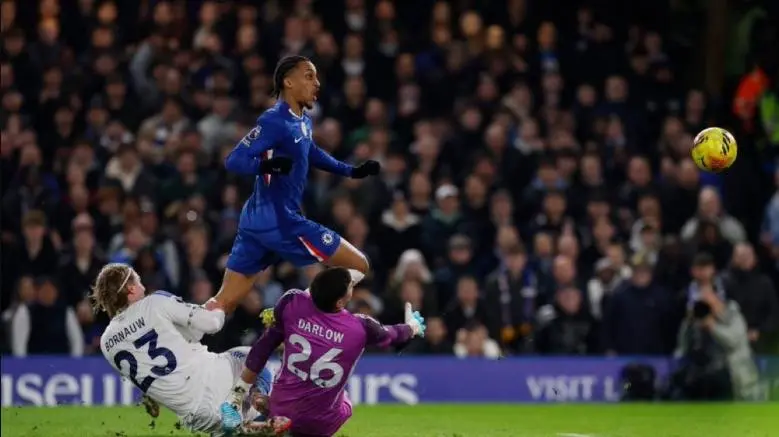 易边再战,切尔西攻势不减,第56分钟桑切斯开大脚,若昂佩德罗顺势杀入利兹联禁区,比约尔从身后伸手推了一下,若昂佩德罗顺势倒地,主裁判也给了蓝军一粒点球,帕尔默主罚的点球打出绝对死角,帮助切尔西把领先的优势扩大到了2球。